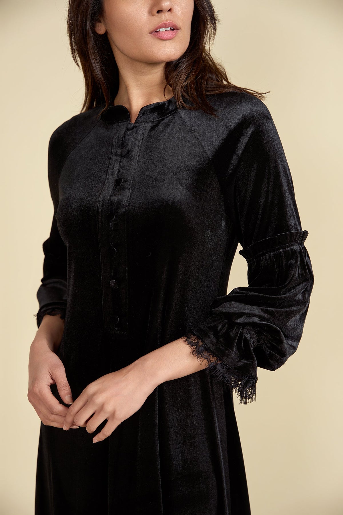 The Velour Maxi Dress from is the perfect combination of comfort and style. Featuring ultra-soft velour, this maxi dress offers a flattering silhouette and nursing-friendly buttons. Look chic while feeling great in this stylish dress. Runs small.