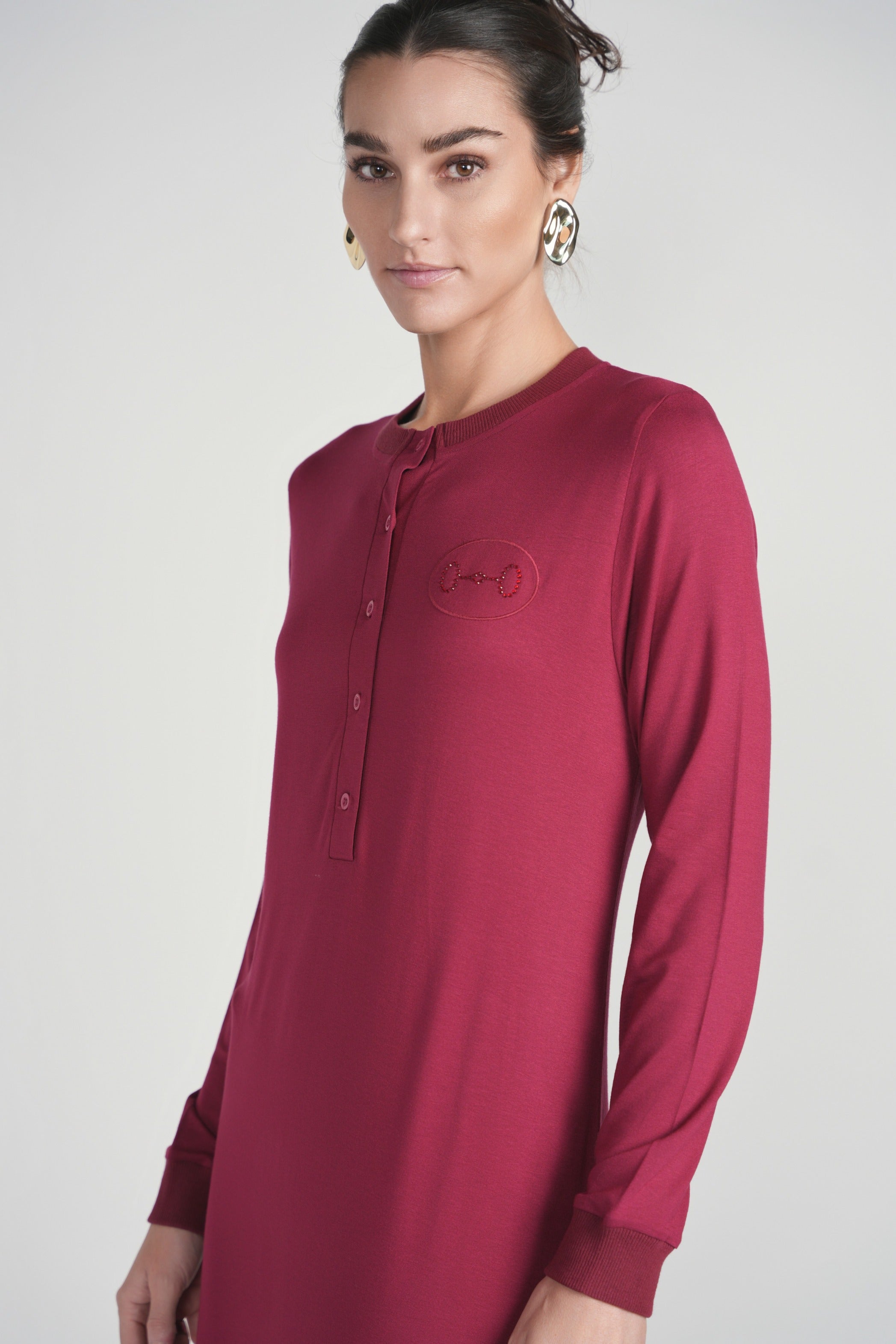 Horesbit Rhinestone Nightgown with Buttons
