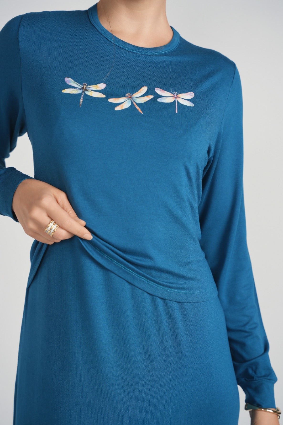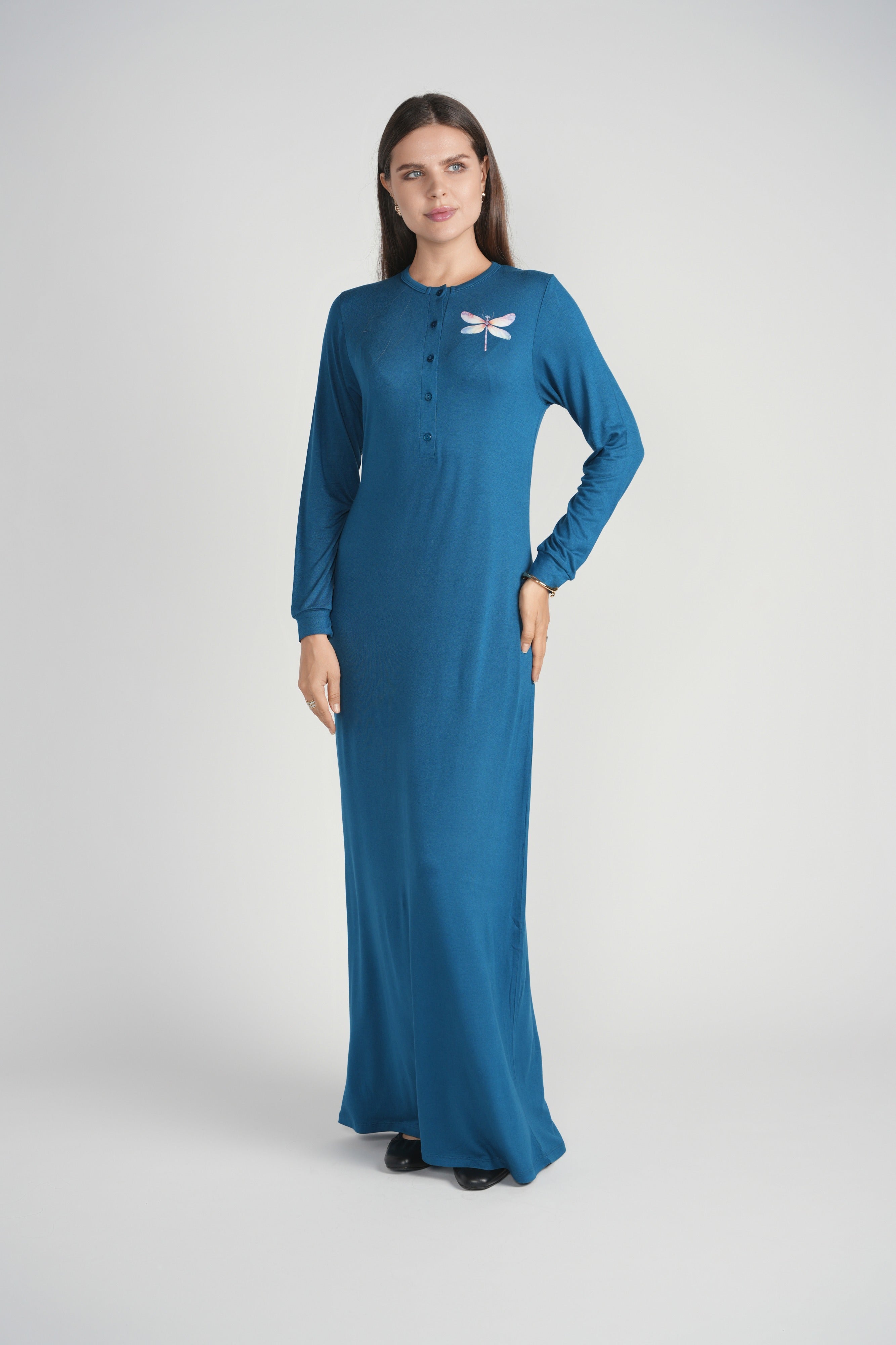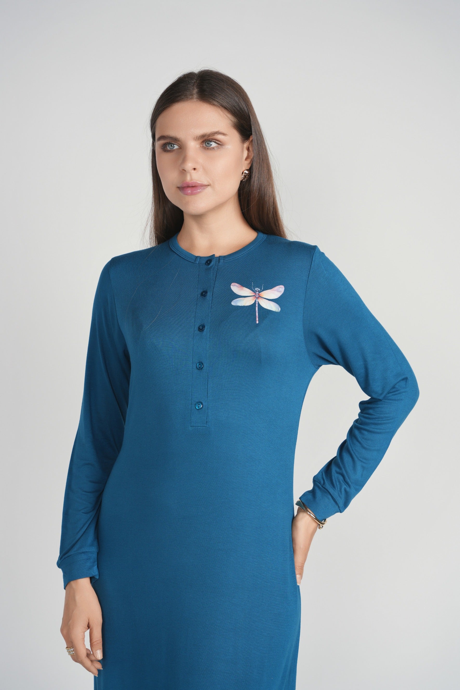 Dragonfly Printed Nightgown with Buttons