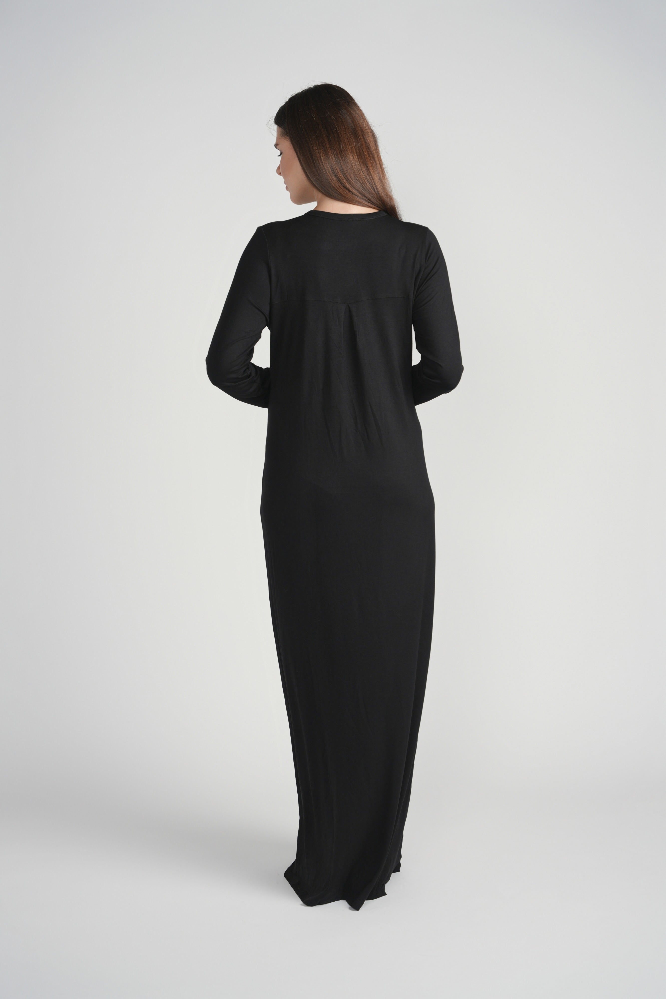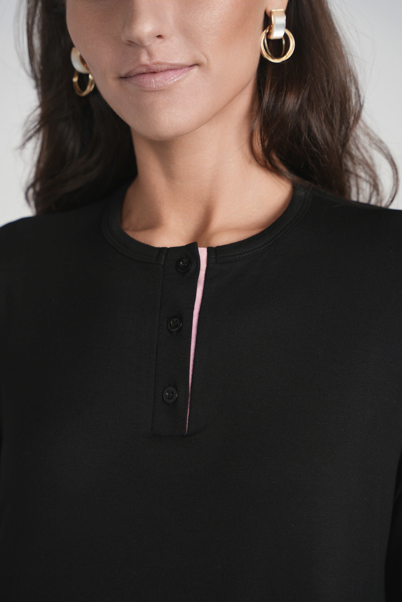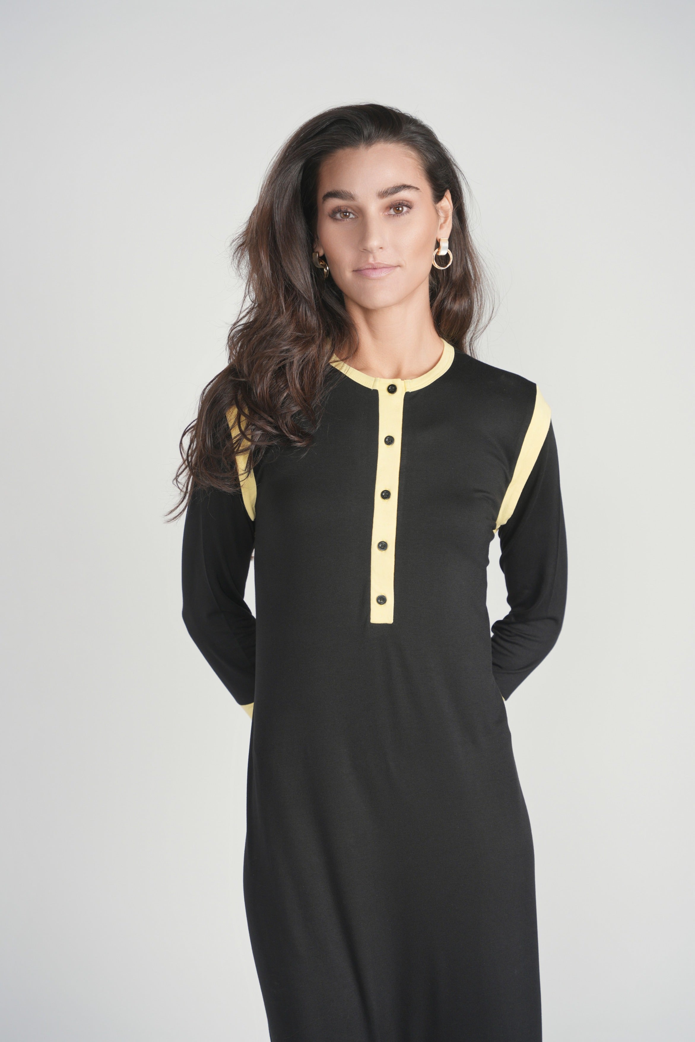 Yellow Detail Button Nightgown- Black