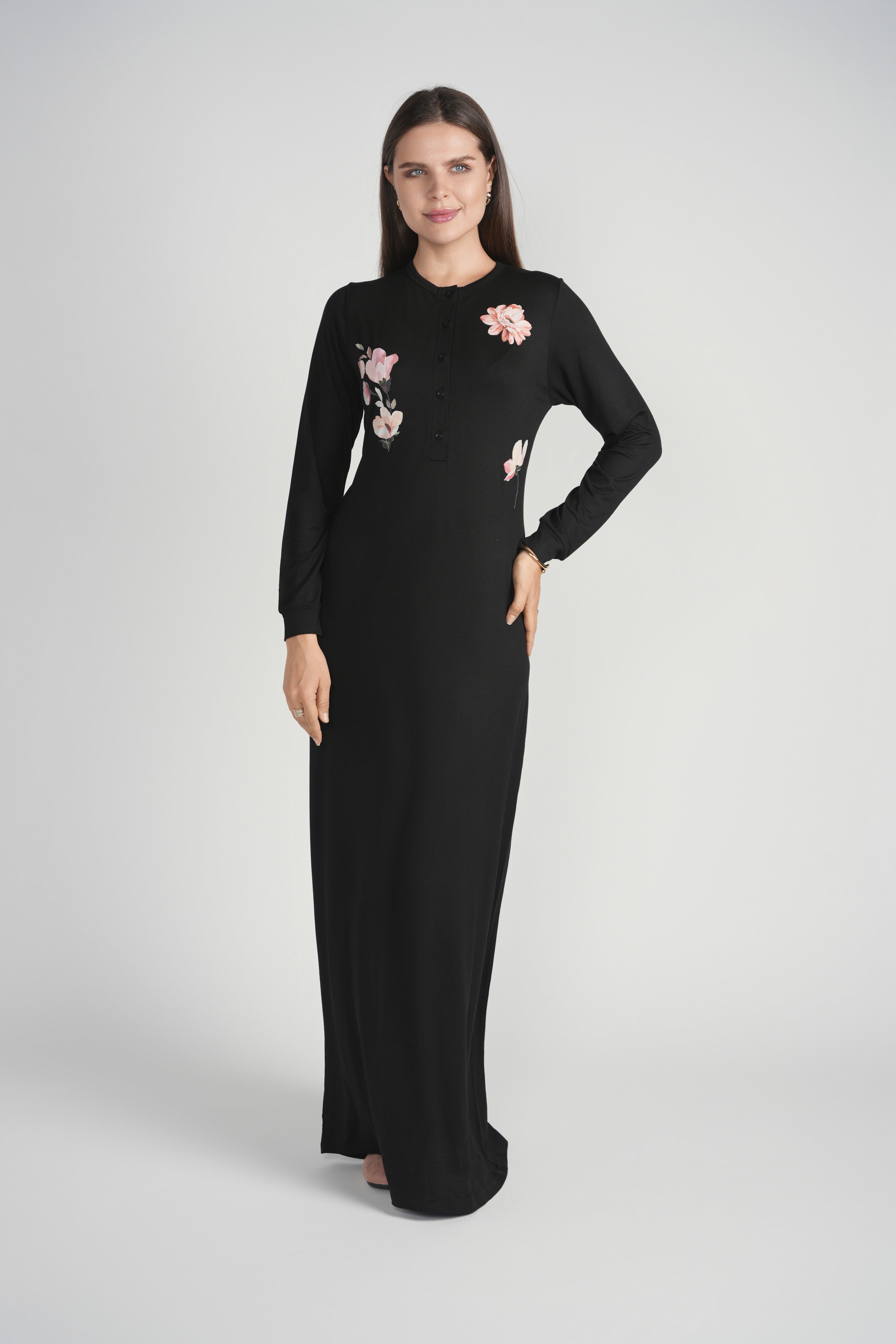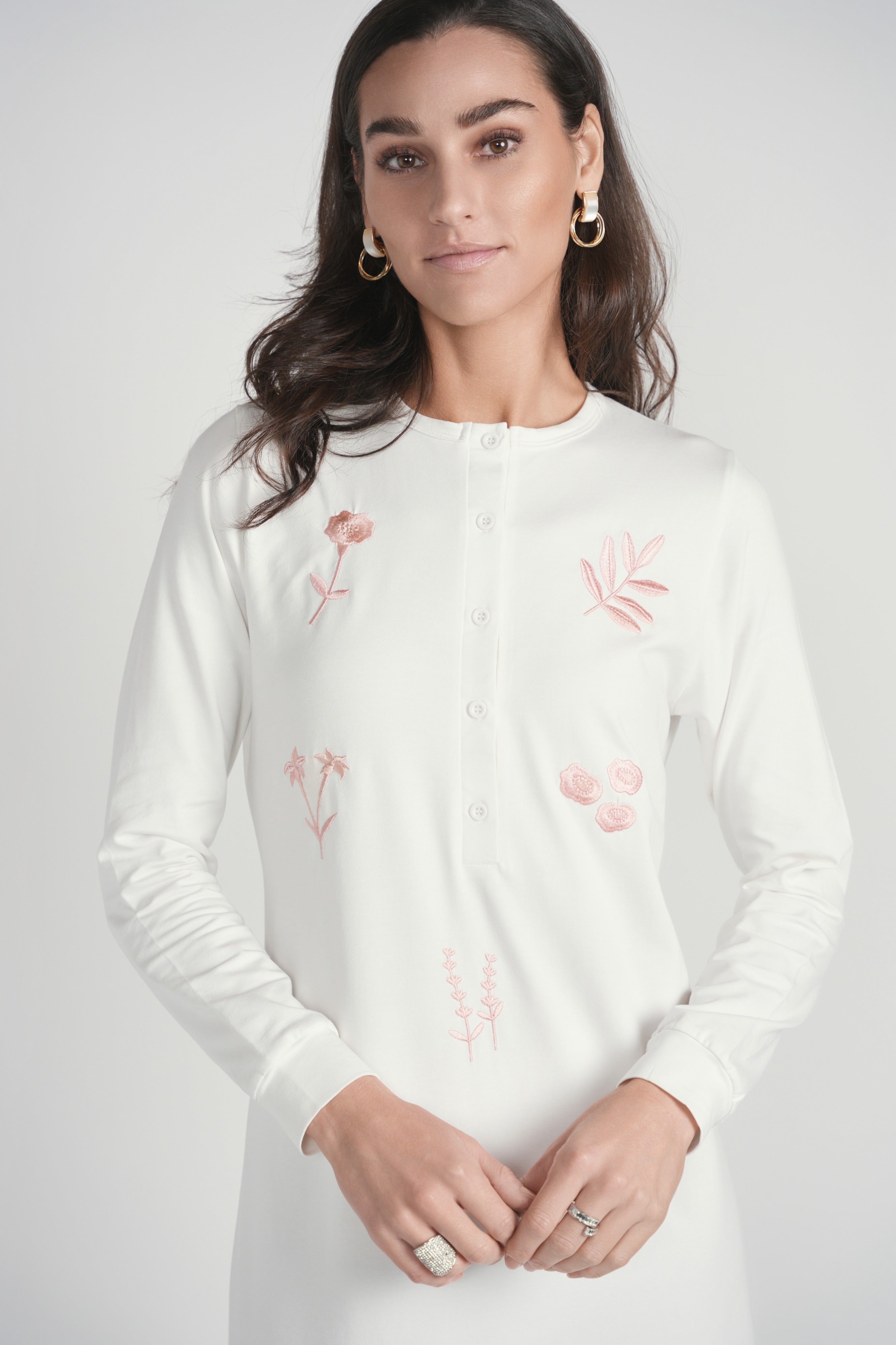 Embroidered Nightgown with Buttons