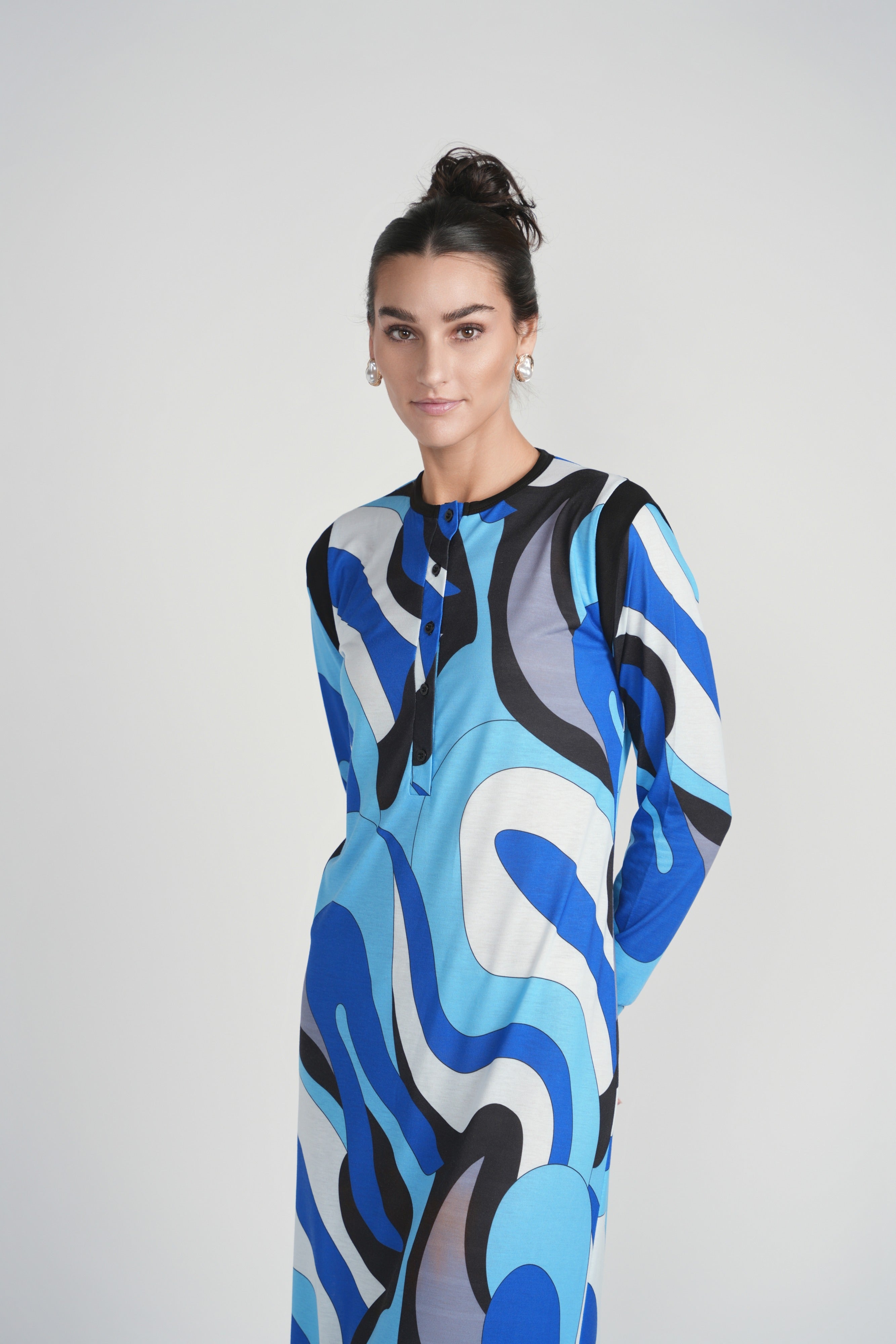 Detail Print Button Nightgown- Blue