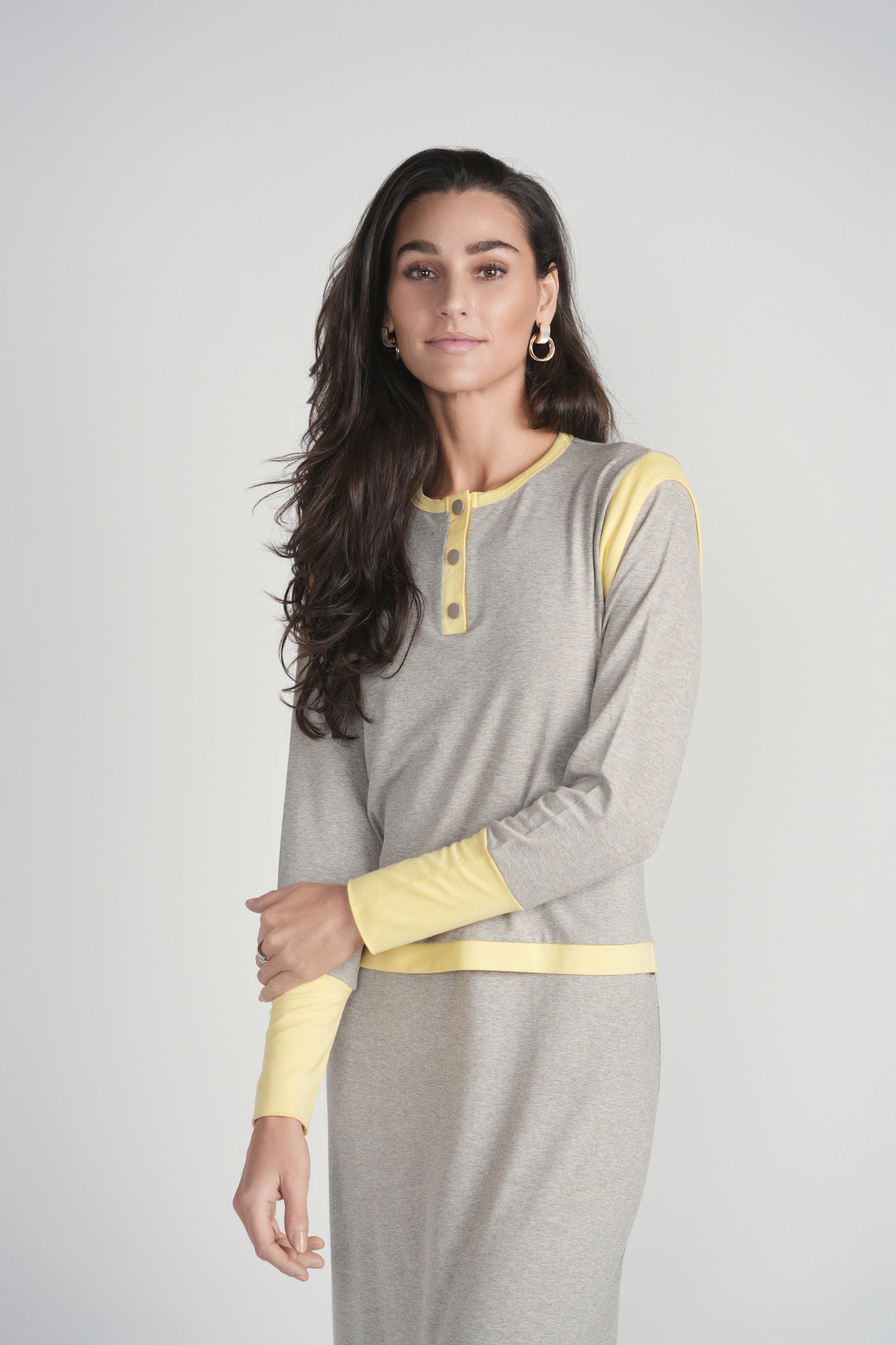 Yellow Detail Nursing Nightgown- Grey
