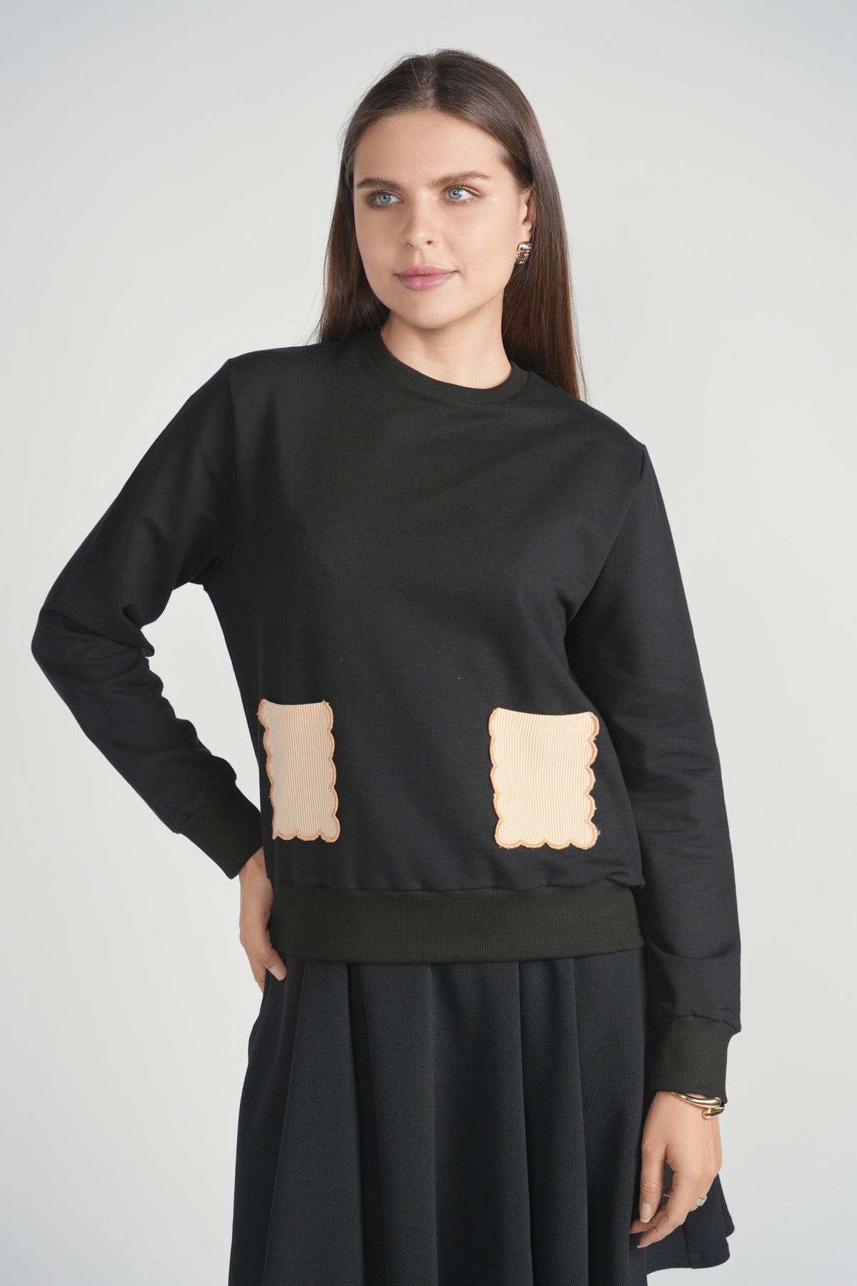 Seersucker Pocket Sweatshirt - Beige